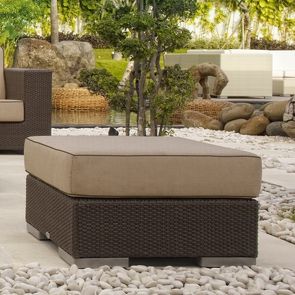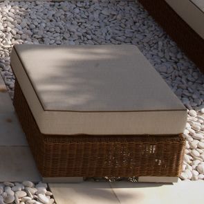 Банкетка Cuatro, отделка искусственный ротанг кофейного цвета, ткань подушки лен цвета шампань