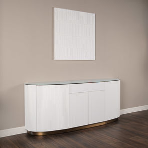 Буфет, отделка стекло G1009-1, белый матовый лак W60510, метал в цвете латунь