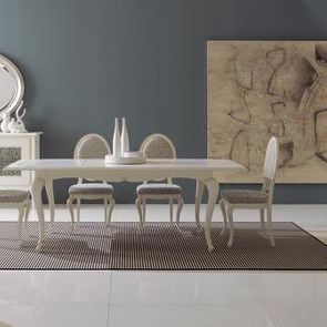 Обеденный стол раздвижной, отделка кремовый полуматовый лак, декор на ножках сусальное серебро