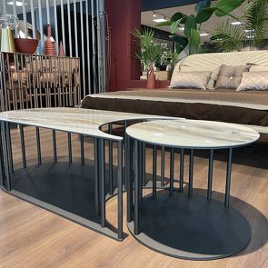 Журнальный столик Sinergy (комплект из 2), отделка серый лак Carbon, глянцевый керамогранит Terra