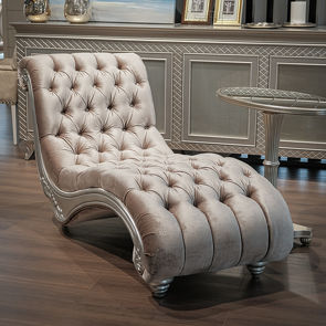Кушетка, отделка серебряное напыление, бежевый велюр