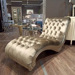 Кушетка, отделка сусальное серебро, покрытое лаком шампань, бежевый велюр