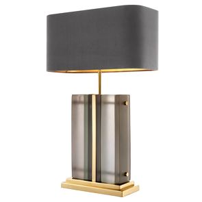 Настольная лампа Solana, отделка полированная латунь, матовое стекло, серый абажур