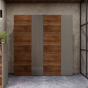 Гардероб, отделка шпон ореха F, серый глянцевый лак