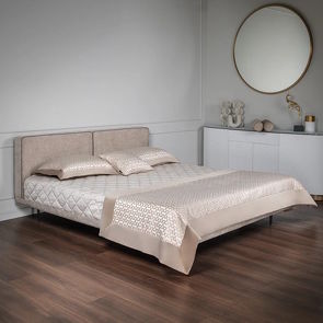 Кровать с решеткой, отделка ткань AB-32, кант AB-2027, WJ-12