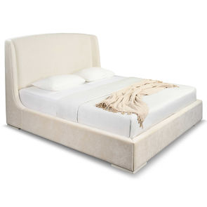 Кровать с решеткой, отделка жемчужный белый лак, ткань Tiffany-01