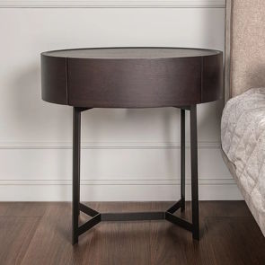 Прикроватная тумбочка/ Приставной столик, отделка шпон ореха F, темно-серый матовый лак