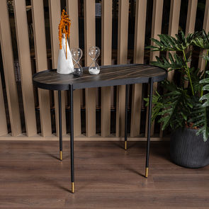 Консоль, отделка закаленное стекло с керамикой, черный металл, латунь