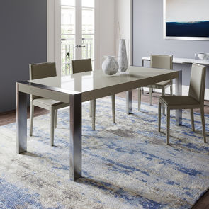 Обеденный стол, отделка глянцевый серо-бежевый лак, полированная сталь