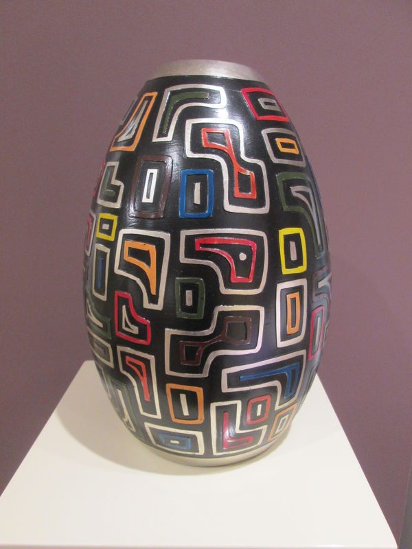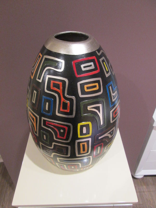 Ваза выполнена в оригинальной овальной форме. Несмотря на свои небольшие размеры, она будет видна в любом месте домашнего интерьера. Причиной этому являются контрастные цвета, использованные в этой композиции.