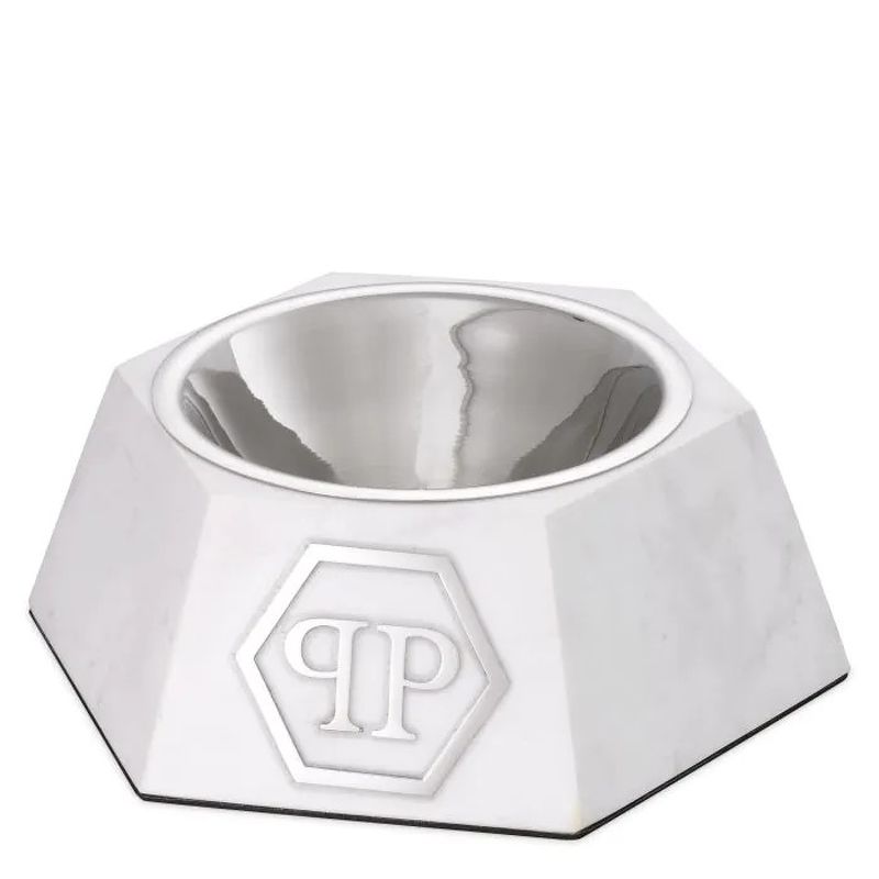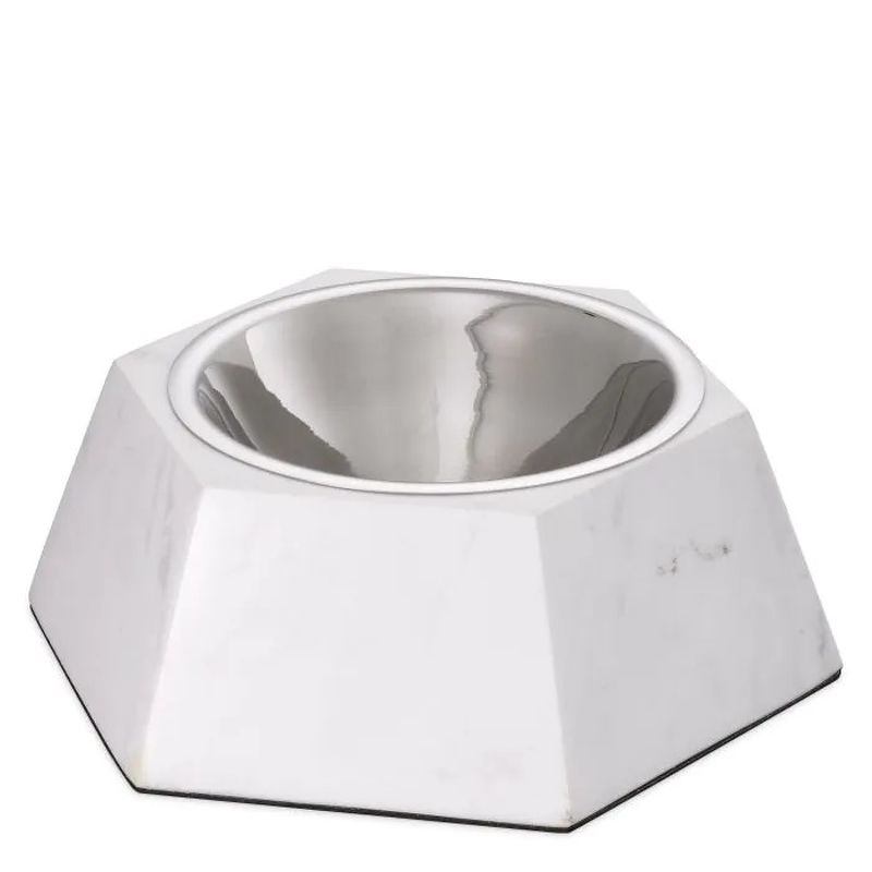 Миска для собак Nice L, отделка белый мрамор, полированный никель, полированная сталь