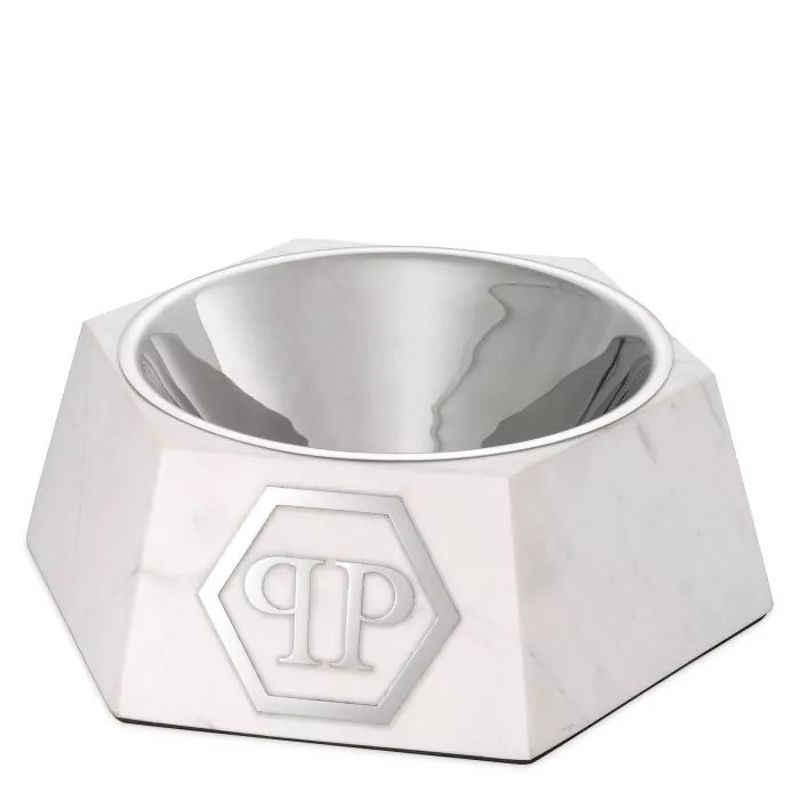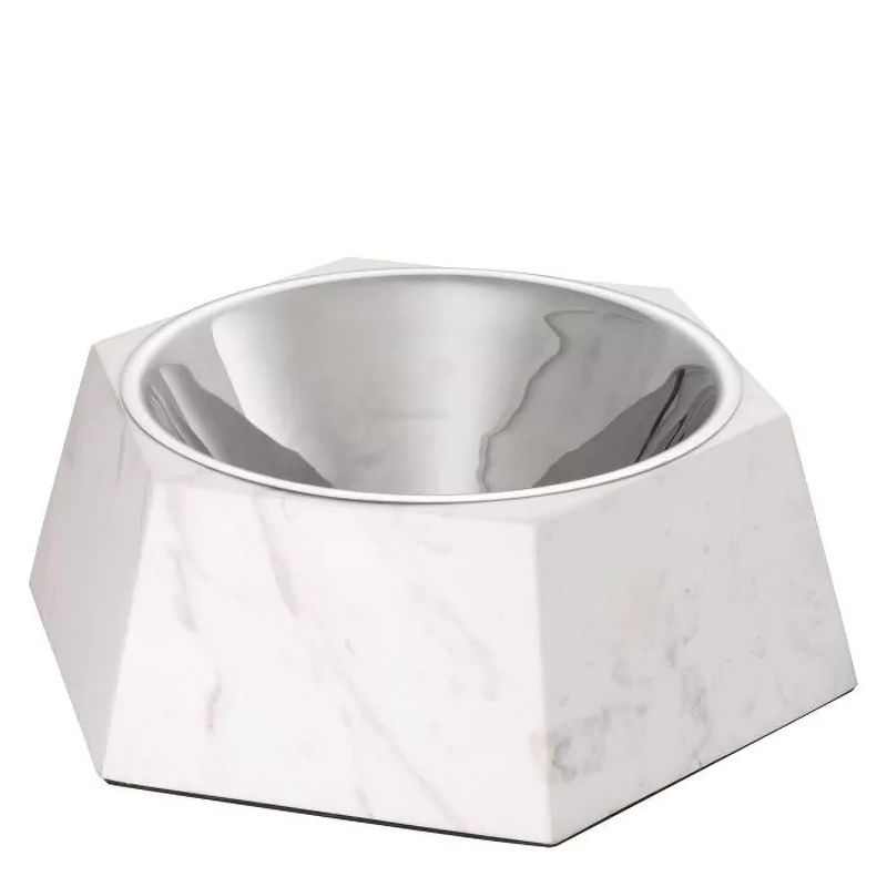 Миска для собак Nice XL, отделка белый мрамор, полированный никель, полированная сталь