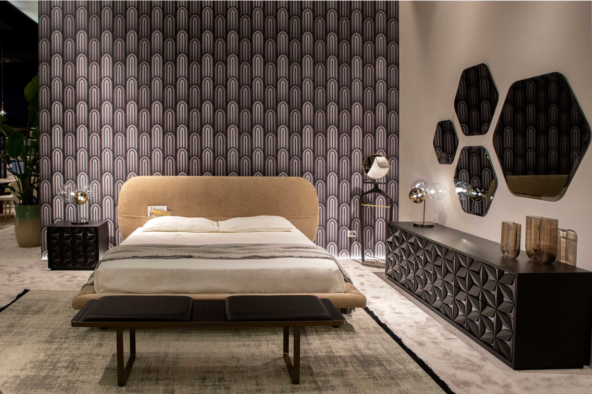 Прикроватная тумбочка с двумя ящиками от фабрики Tonin Casa выполнена из дерева. Дверки декорированы зеркалом.