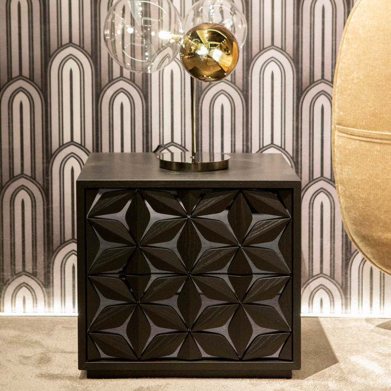 Прикроватная тумбочка All Star, отделка темный ясень, дымчатое зеркало, серый лак Carbon