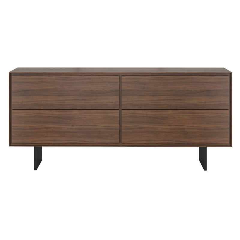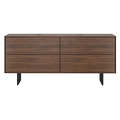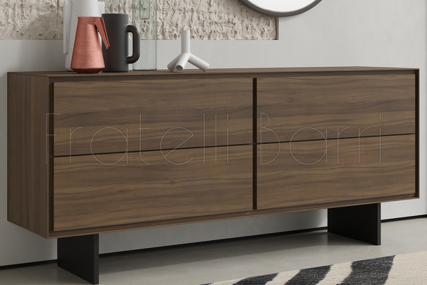 Буфет выполнен из высококачественного, сертифицированного МДФ высокой плотности. Отделка - натуральный шпон северо-американского ореха. Ноги выполнены из метала и окрашены в черный матовый цвет.