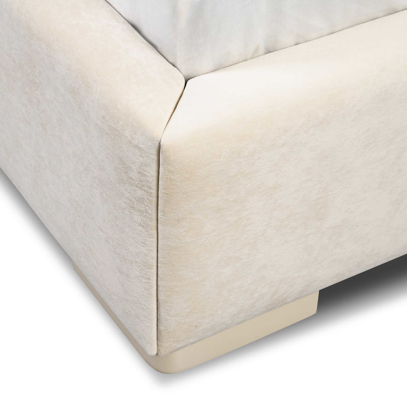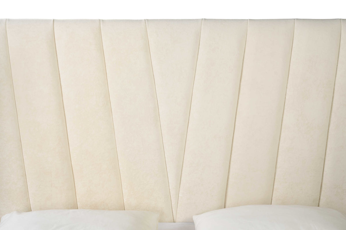 Кровать в стиле ар-деко шикарно смотрится за счет оригинального дизайна. Боковины изголовья расширены кверху, и слегка изогнуты. Поверхность панели оформлена вертикальными полосами с упругой набивкой.