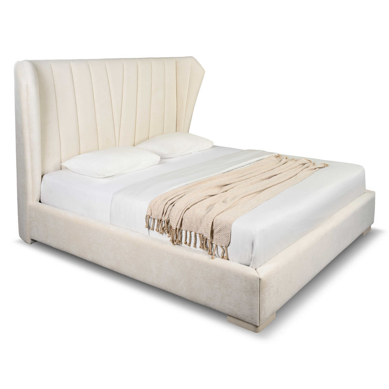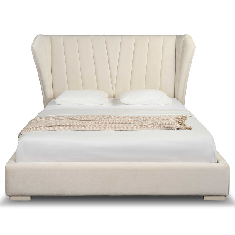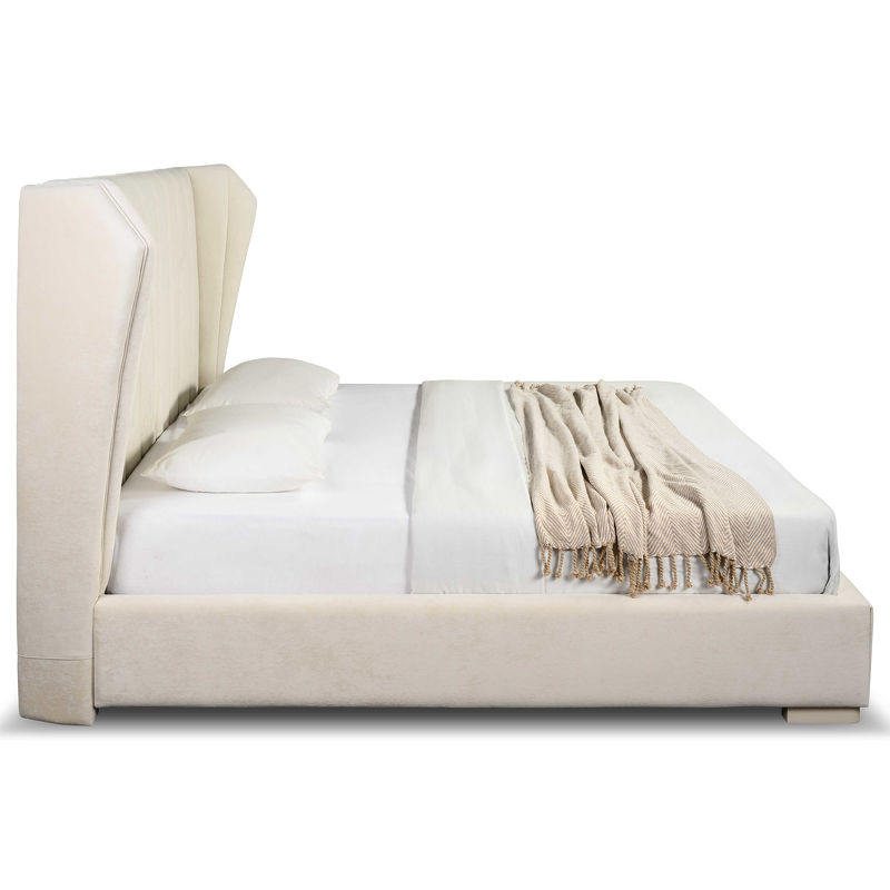 Каркас изготовлен из качественных и безопасных материалов: массива дерева и МДФ. Для обивки использована ткань Tiffany-01 приятного оттенка, который легко впишется в различные по цветовым приоритетам интерьеры. Обратная сторона спинки обита черным техническим текстилем.
