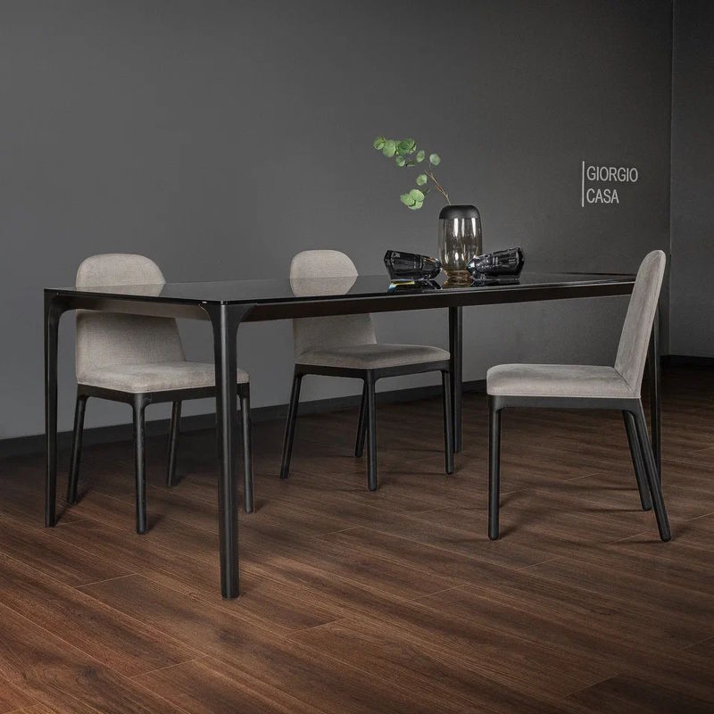 Обеденный стол Easy, отделка nero, дымчатое стекло