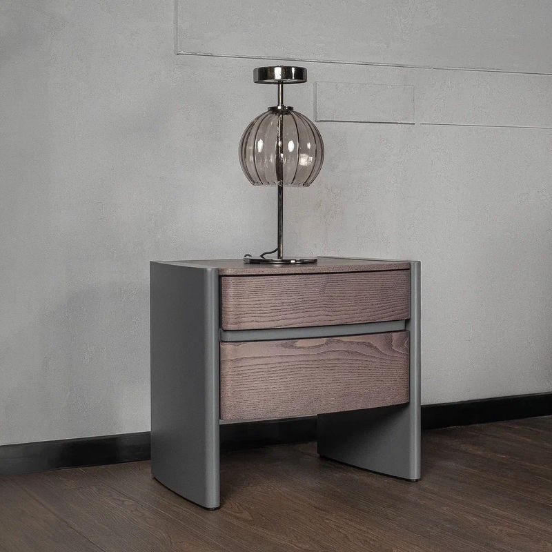 Прикроватная тумбочка Drop, отделка лак Grafite F53, темно-серый ясень F51