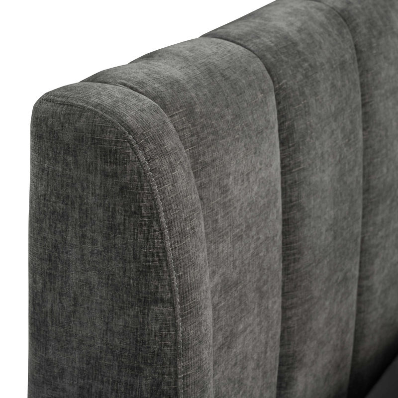 Кровать изготовлена из массива сосны, мягкое изголовье декорировано вертикальной стежкой. Ламели изготовлены из массива. Ножки — прочный высококачественный металл.