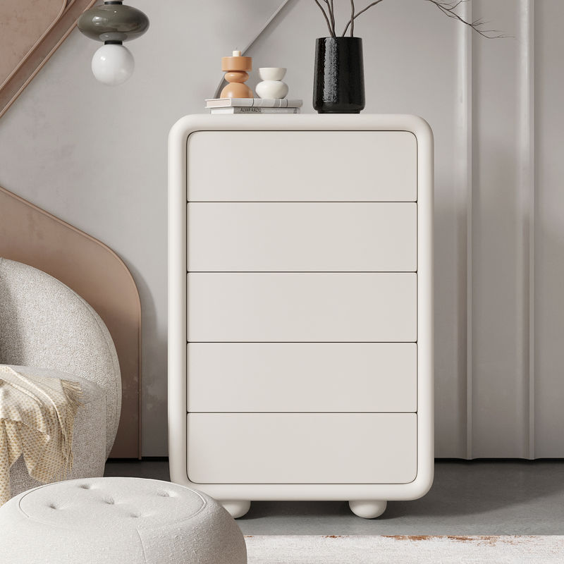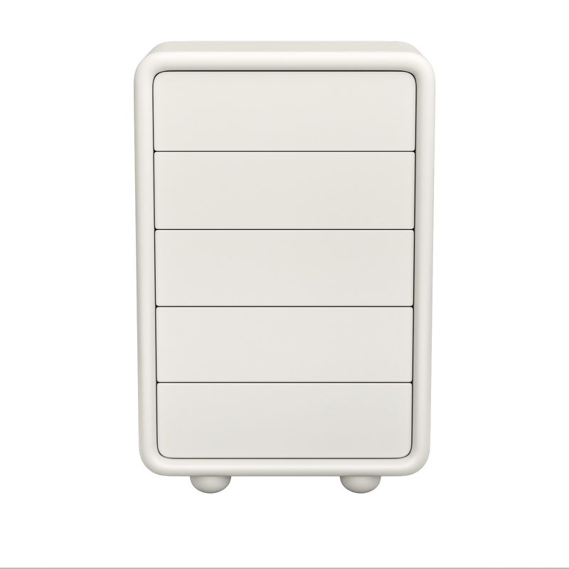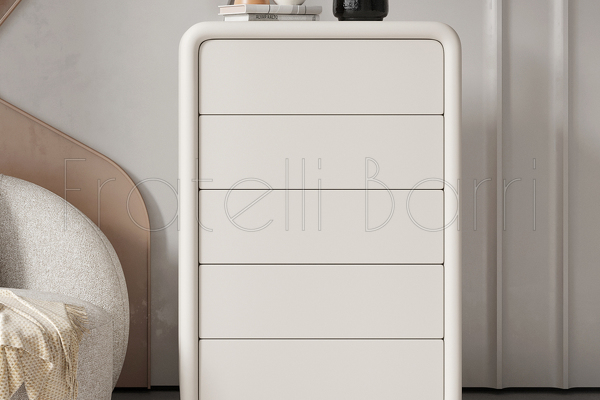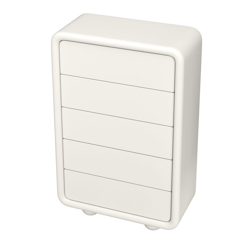 Комод изготовлен из высококачественного МДФ высокой плотности стандарта Е1, покрытого экологически чистым лаком на водной основе. Оснащен пятью выдвижными ящиками.
