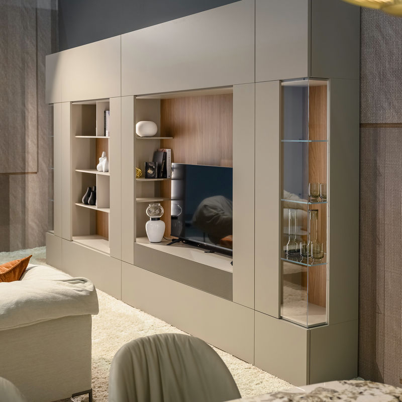 Книжный шкаф, отделка матовый лак Sabbia, орех, прозрачное стекло