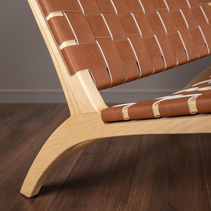 Кресло от бренда Mod Interiors идеальный вариант для интерьеров в современном стиле. Основание изготовлено из массива ясеня, сидение выполнено из переплетенных полос плотной кожи.