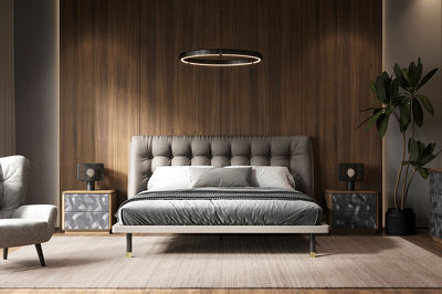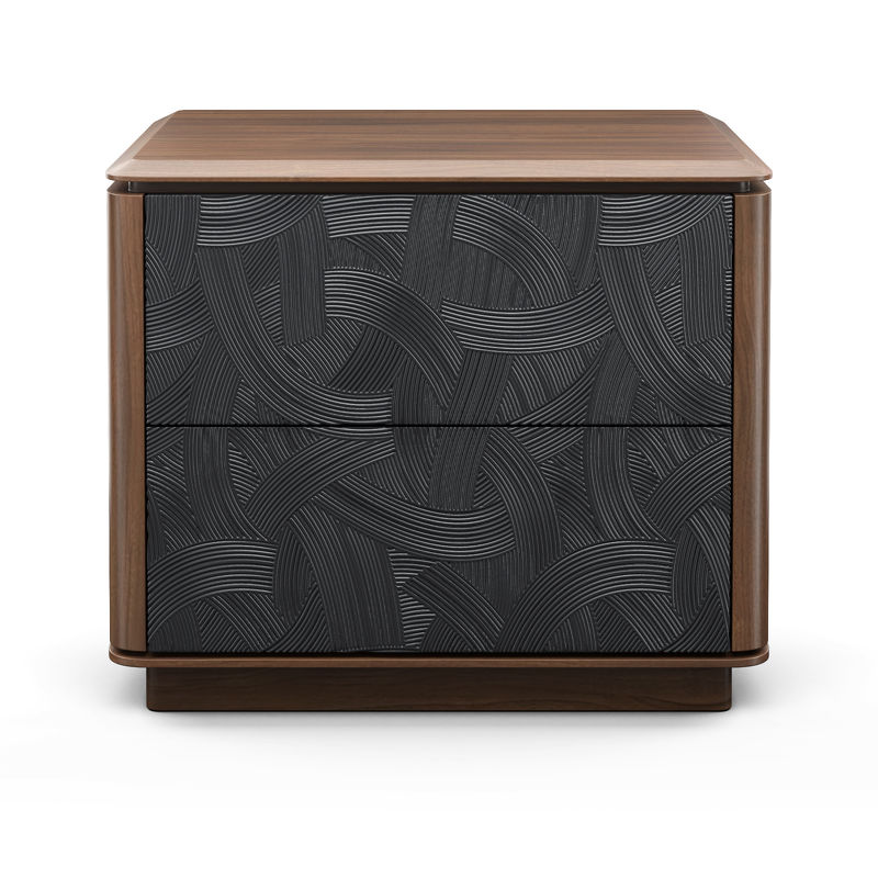 Прикроватная тумбочка, отделка шпон ореха F, темно-серый матовый лак, темно-серый узор