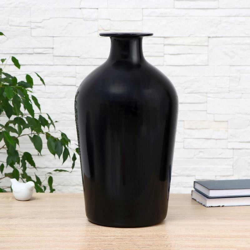 Ваза стеклянная, отделка черный глянец
