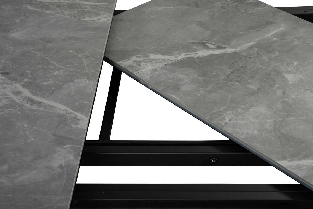 Обеденный стол раздвижной, отделка закаленное стекло с керамикой, черный металл