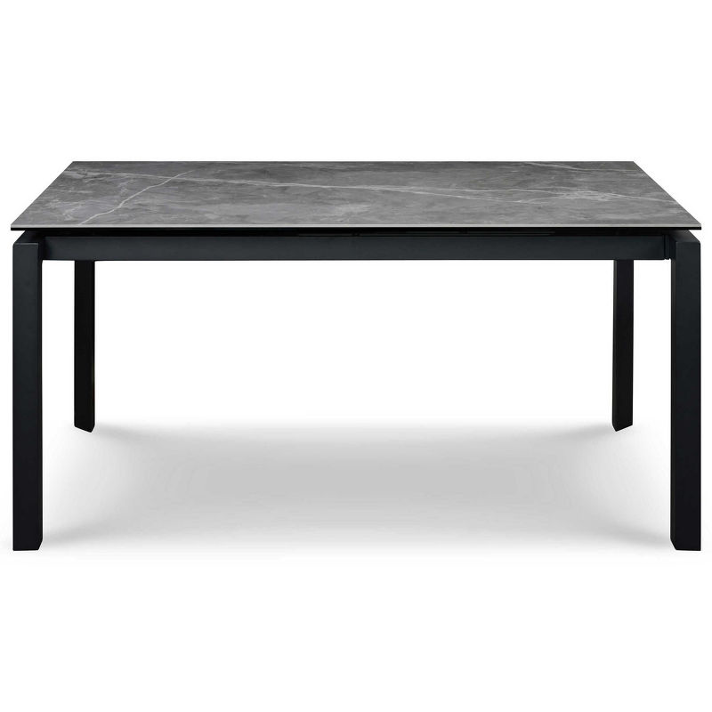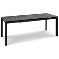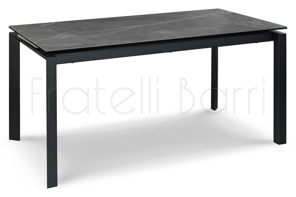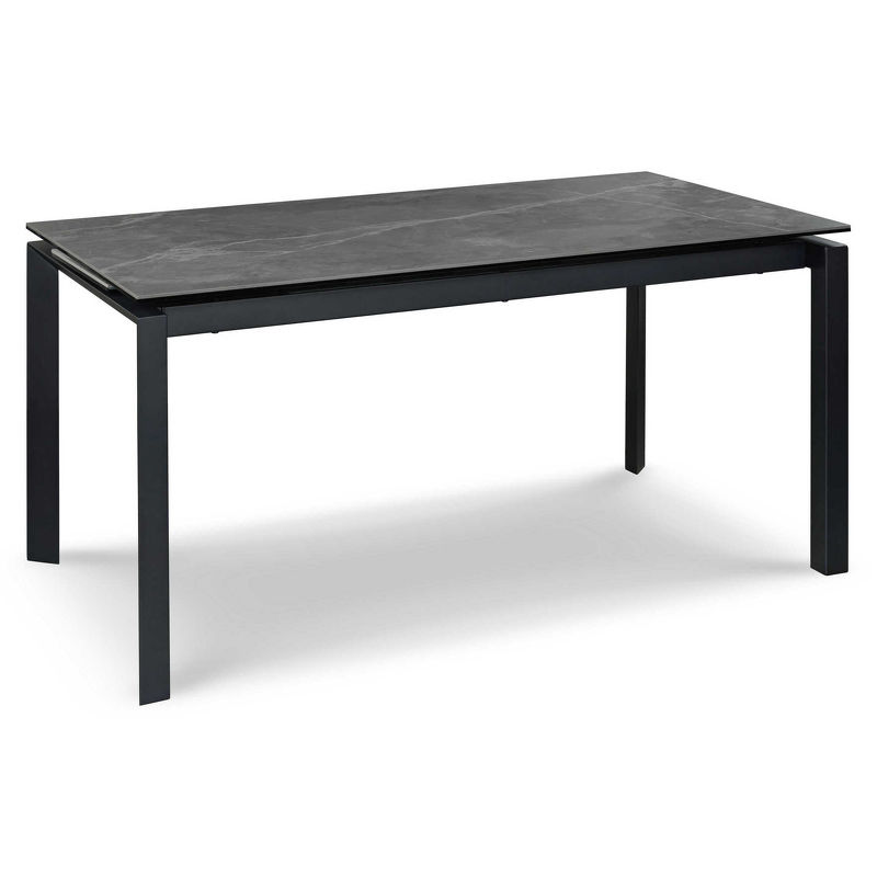 Обеденный стол раздвижной, отделка закаленное стекло с керамикой, черный металл