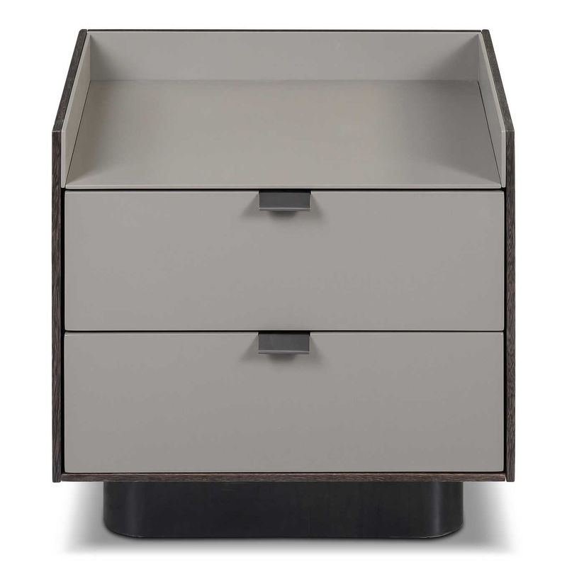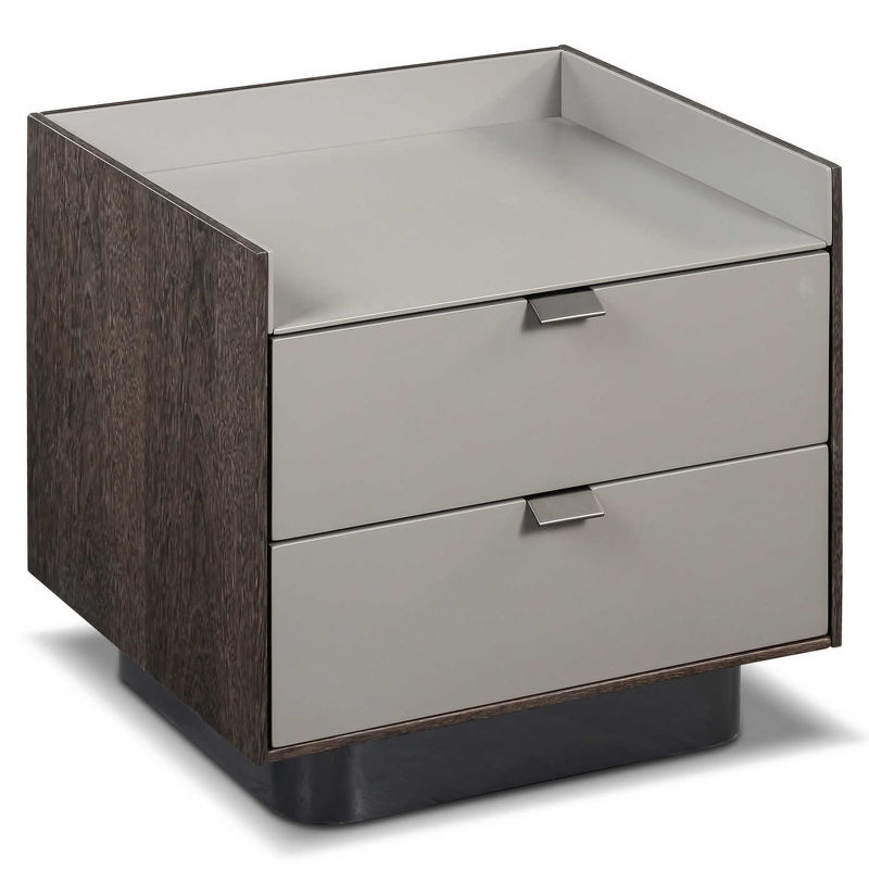 Прикроватная тумбочка, отделка серый матовый Morandi, шпон venge, черный глянцевый лак