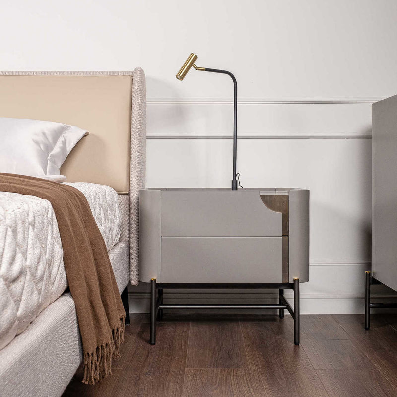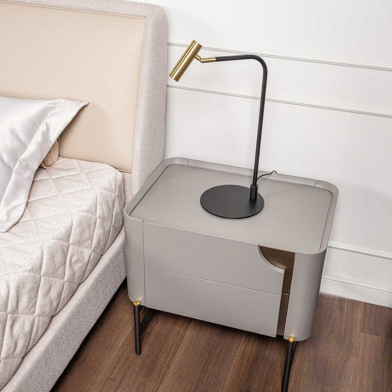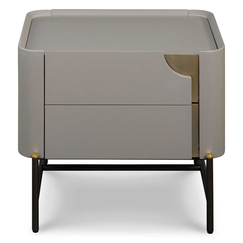 Прикроватная тумбочка, отделка серый матовый Morandi, латунь, серебристо-черный металл