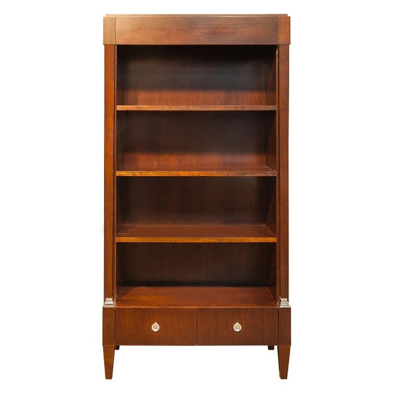 Стеллаж выполнен в стиле Неоклассика. Отделка шпон вишни cherry С. В нижней части 2 выдвижных ящика. Сделан из массива дерева и высококачественного МДФ высокой плотности.