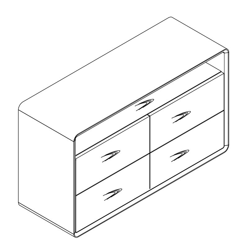 Комод с 4 выдвижными ящиками, что делает его максимально удобным в использовании.