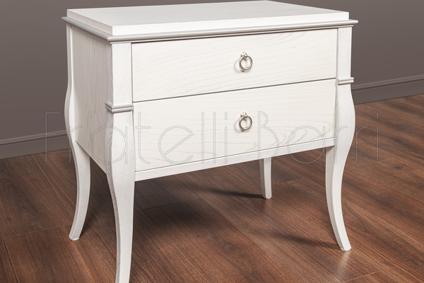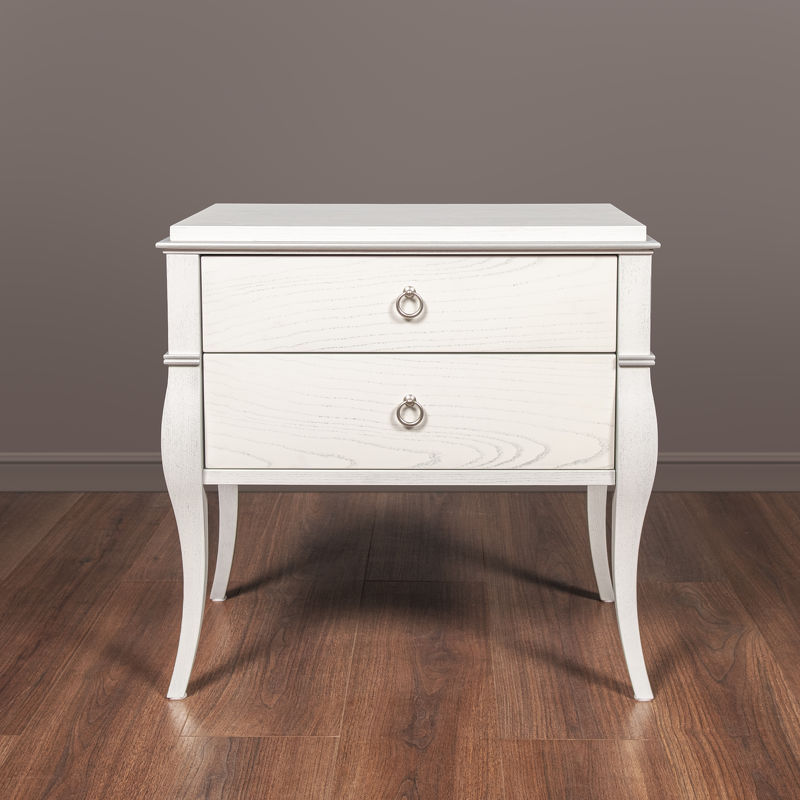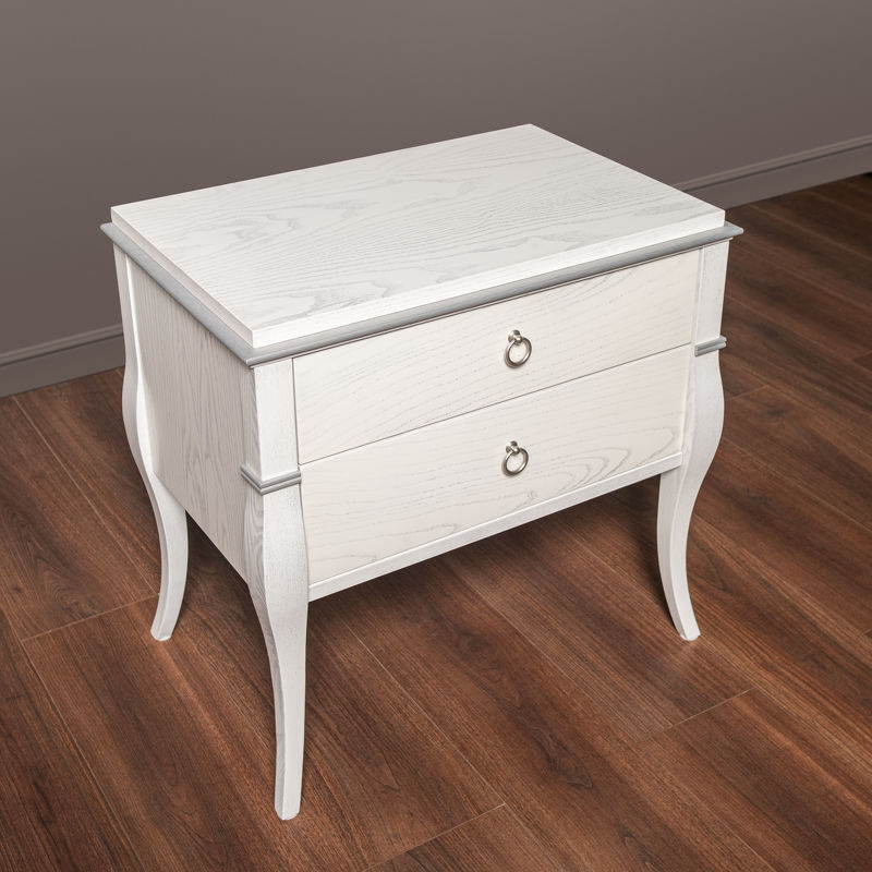 Прикроватная тумбочка Primavera, отделка белый лак, серебро D34