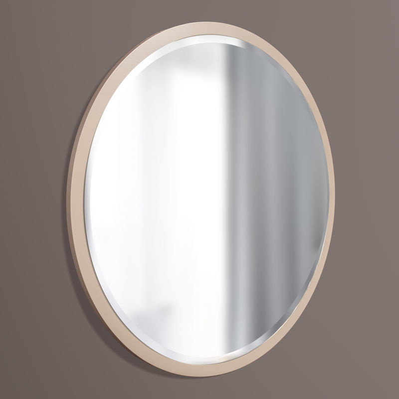 Круглое зеркало от фабрики Frattelli Barri. Мебель обновлённой коллекции «Salvador New» изготавливается из шпонированного ДСП ясень, натурального дерева ясень и лДСП. Отделка мебели выполнена полиуретановыми ЛК материалами.