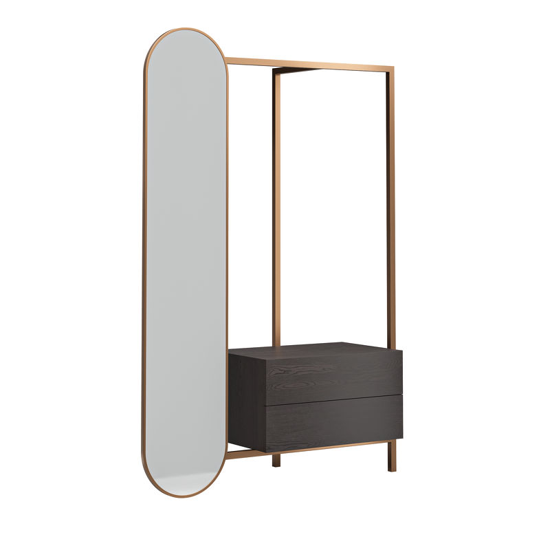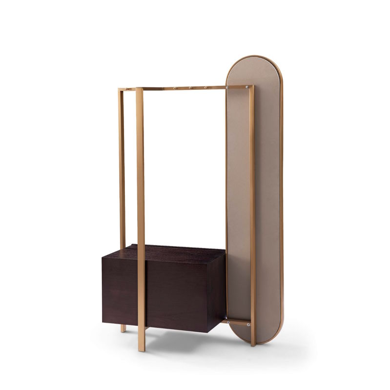 Напольная вешалка для одежды от бренда Fratelli Barri в современном стиле. Такой предмет мебели часто ставят в спальне как напольное зеркало с функцией хранения.