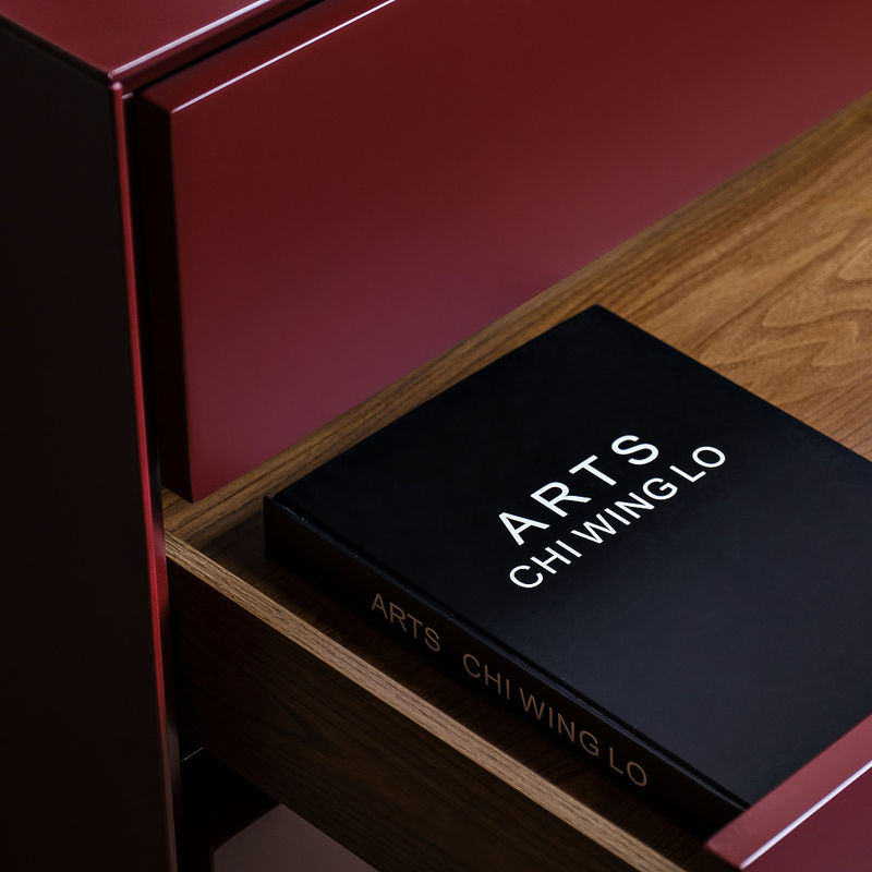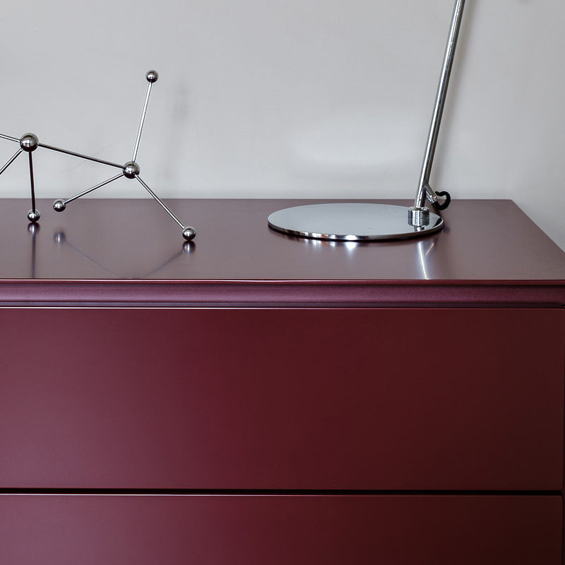 У комода три выдвижных ящика со скрытыми направляющими и механизмом открывания push to open (открывание нажатием).