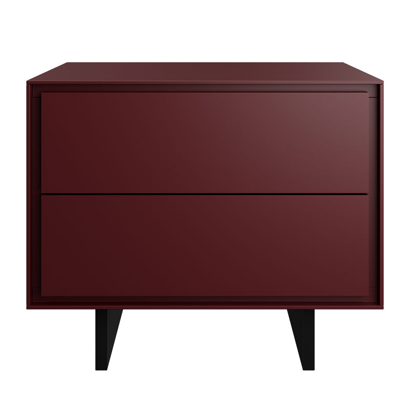 Тумбочка выполнена из высококачественного, сертифицированного МДФ высокой плотности, в отделке - матовый лак роскошного винного оттенка. Ноги выполнены из метала и окрашены в черный матовый цвет.