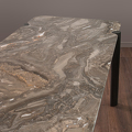 Столешница выполнена из натурального мрамора Venice в серо-бежевых тонах , подстолье из МДФ с отделкой меламин серого цвета, ножки - крашенный метал темно-серого цвета.
