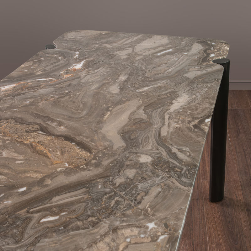 Дизайнерский стол от бренда Fratelli Barri - идеальное сочетание стиля и функционала. По задумке дизайнера ножки стола как бы вошли в поток мягкого расплавленного камня, который застыв превратился в великолепную мраморную столешницу.