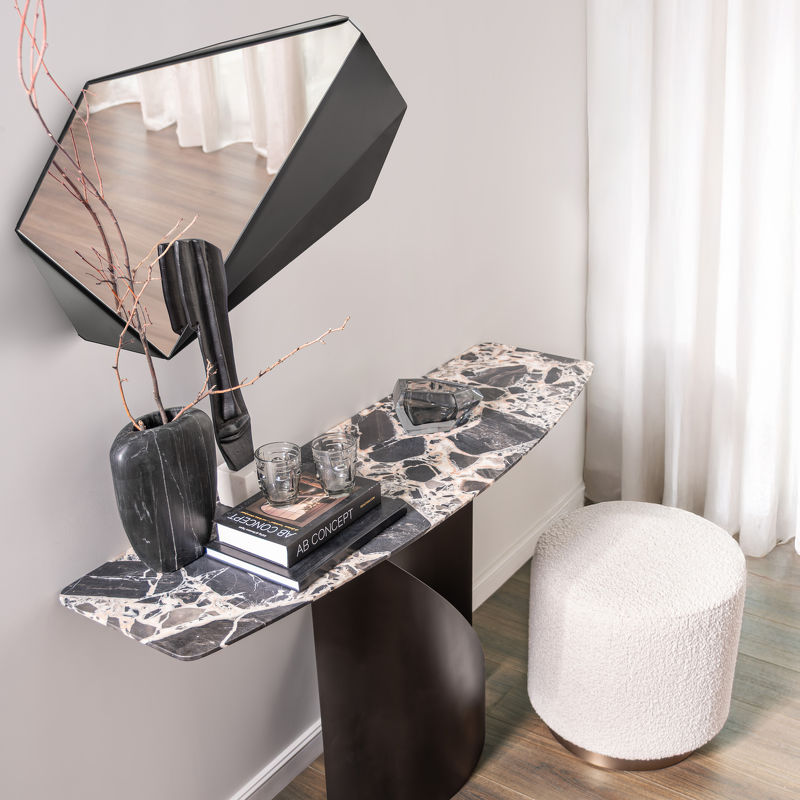 Акцентная необычная рама выполнена из металла в лаке черного цвета с легким глянцем