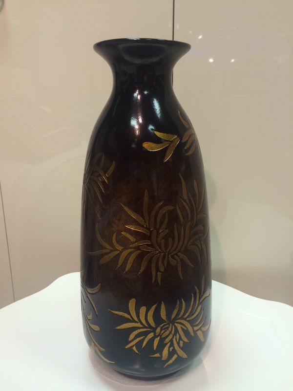 Ваза с зауженным горлышком выполнена в стиле Ар деко. Украшена цветочным узором. Аксессуар отлично впишется в интерьеры разных стилей, благадаря свой форме и выдержанными тонами.