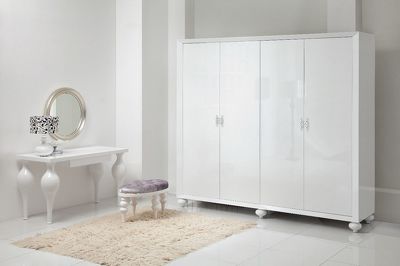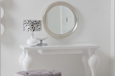 Туалетный стол выполнен в стиле Ар деко. Отделка белый блестящий лак. Оснащен 1 выдвижным ящиком. Туалетный столик просто верх изящества! Согласитесь: несмотря на его приличные размеры, он создаёт атмосферу невесомости. Поскольку площадь туалетного столика достаточно велика, он может служить компактным письменным столом для владельца.