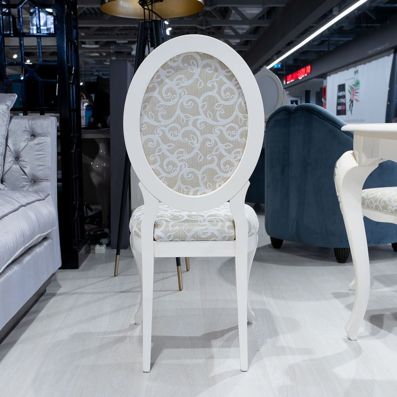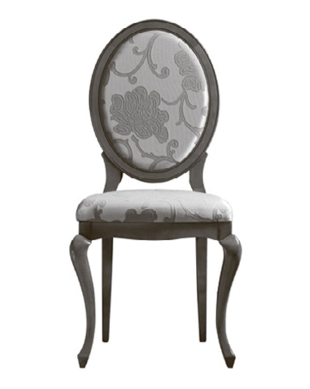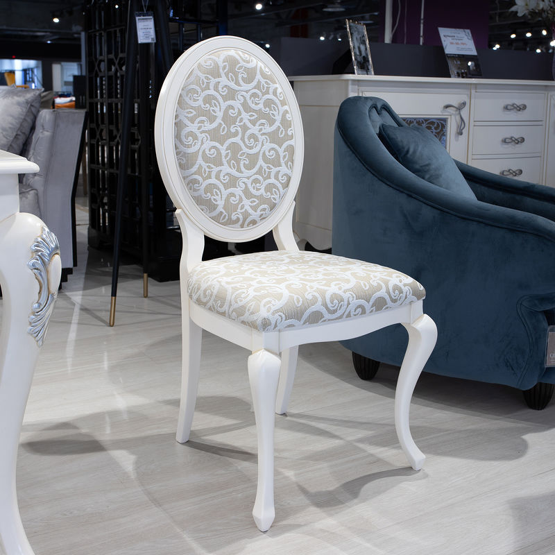 Стул с медальонной спинкой выполнен в классическом стиле. Опирается на ножки кабриоли, задние ножки слегка наклонены.