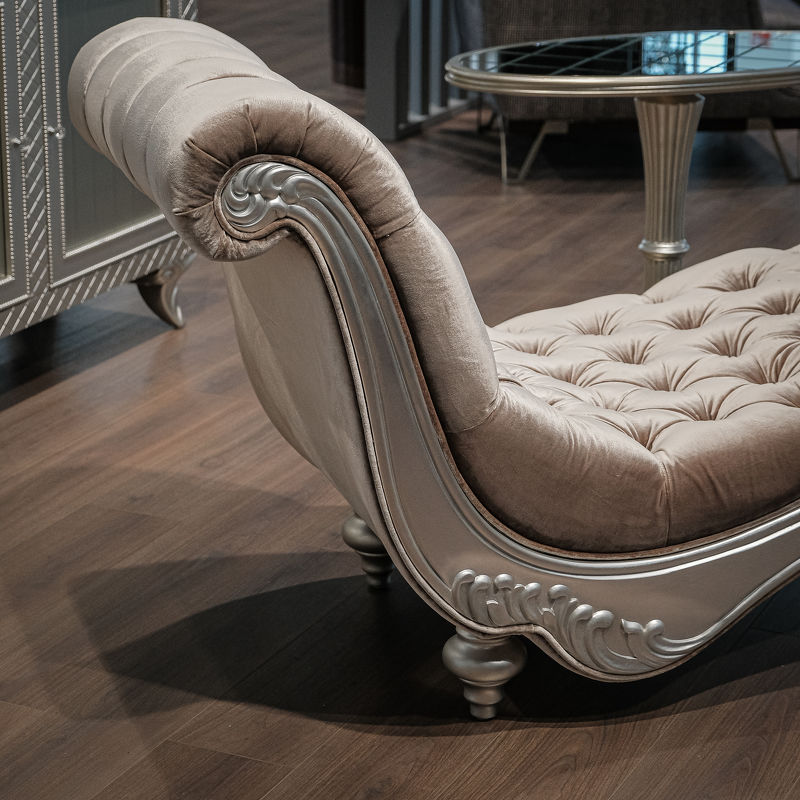 Отделка деревянных деталей - сусальное серебро, покрытое лаком цвет шампань.