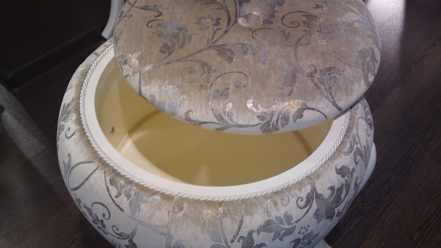 Пуфик, отделка кремовый полуматовый лак, ткань cat. C