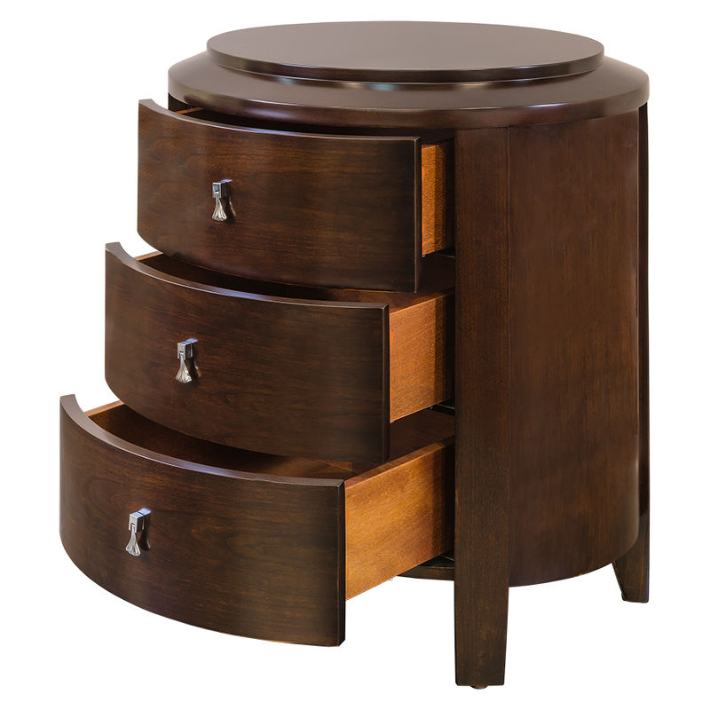 Высокая прикроватная тумбочка круглой формы с 3 ящиками в стиле неоклассика от итальянского бренда Fratelli Barri. Вместительный вариант для европейской спальни.