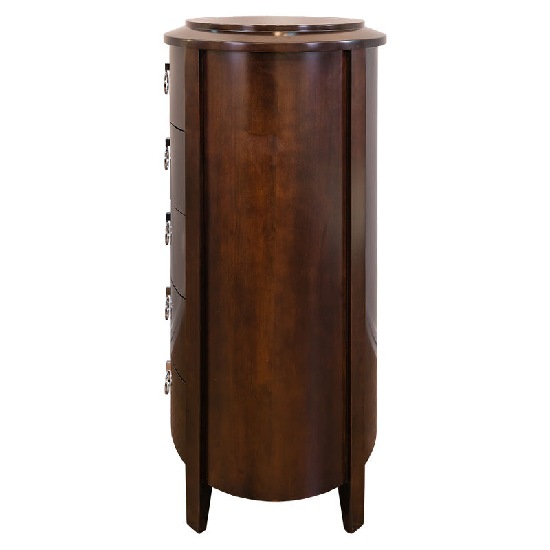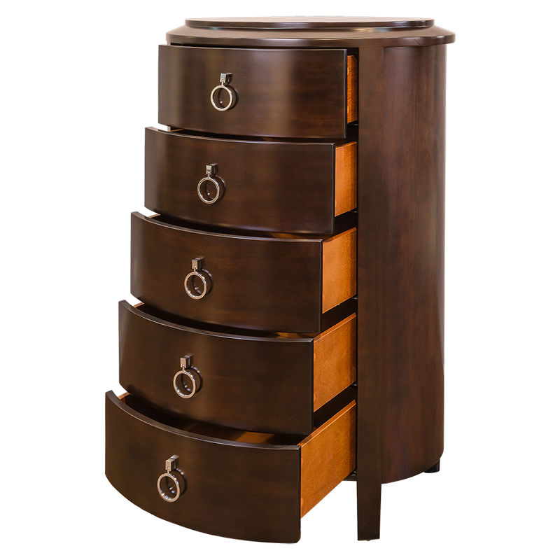 Комод высокий с 5 выдвижными ящиками выполнен в стиле Неоклассика. Отделка шпон вишни. Сделан из массива дерева и высококачественного МДФ высокой плотности.